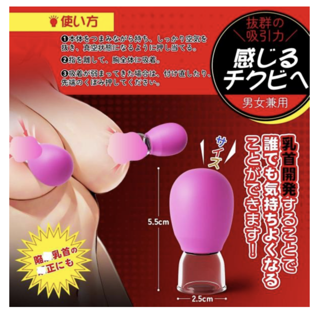この手のグッズは乳首専用のものも多いですが、この商品はクリトリスにも使えるのが面白いポイントです。